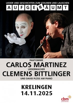 Pantomime & Chanson mit dem Pantomimen Carlos Martinez, dem Liedermacher Clemens Bittlinger und dem Pianisten David Plüss.