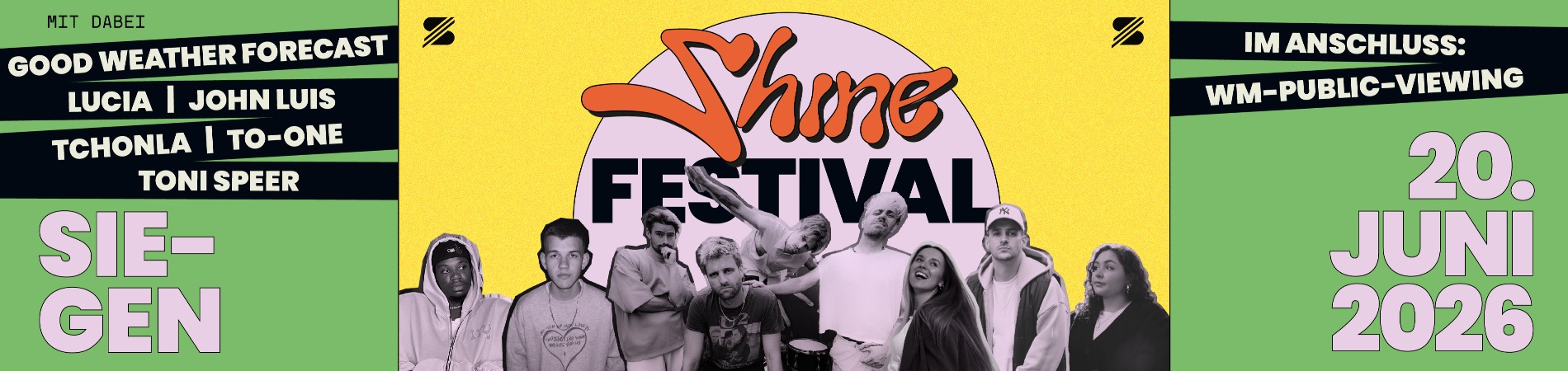 Am 20. Juni 26 übernehmen wir mit dem SHINE Festival eure Stadt.