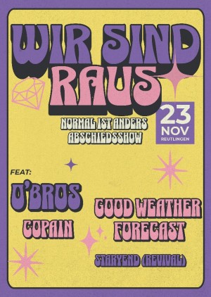 Normal ist Anders dreht noch einmal auf und wird am 23.11 in Reutlingen in der FES Sporthalle noch einmal alles geben. Mit euch zusammen, ein allerletztes mal durchdrehen und singen: “Wir glauben fest daran…"