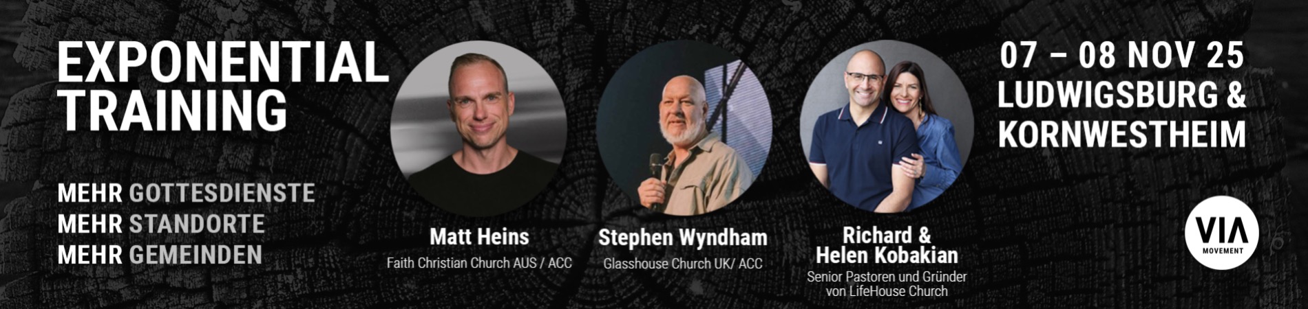 *Exponential Tag 2 findet im Rahmen unserer LeadCon statt, eine Tageskonferenz für alle Leiter im VIA Movement. Es fallen keine zusätzlichen Konferenzgebühren an; der Preis für Exponential deckt die LeadCon mit ab.