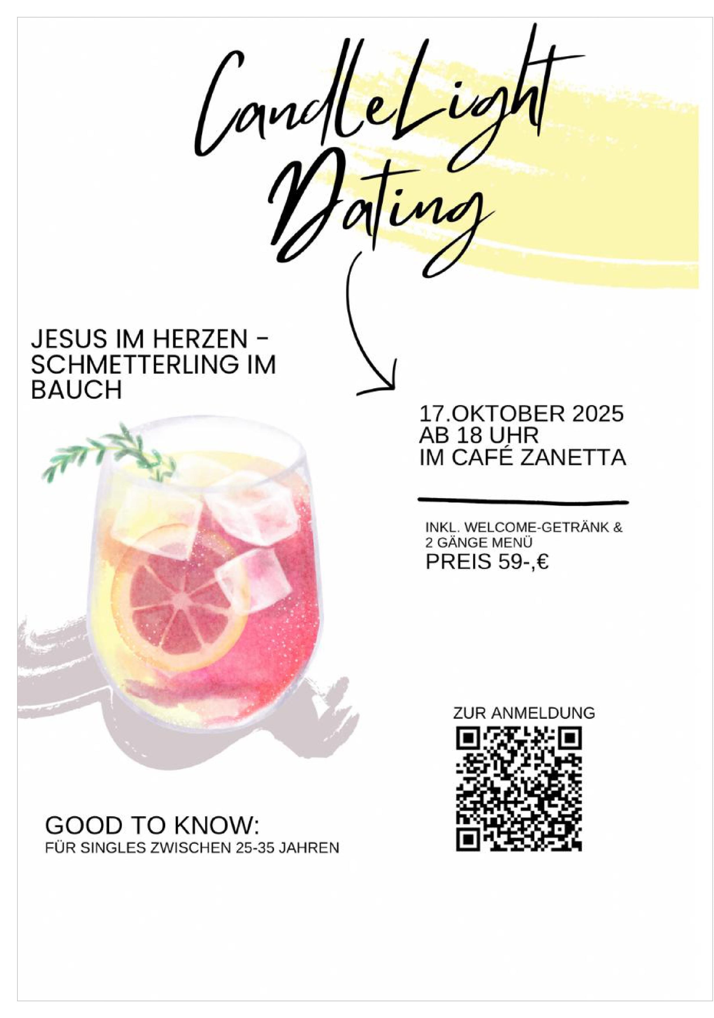 Lerne Christen aus verschiedenen Gemeinden, in entspannter Atmosphäre & bei einem 2-Gänge Menü kennen!