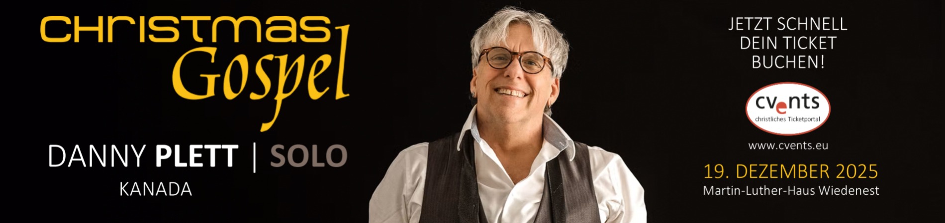 Auch bei Christmas Gospel ist Danny Plett regelmäßiger Gast. Er war vor 21 Jahren der erste Künstler, der bei Christmas Gospel in Wiedenest auf der Bühne stand. Mittlerweile ist diese alljährliche Veranstaltung zum "Kultevent" avanciert. - Allein am Flügel und mit seiner unverwechselbaren Stimme und seinen tiefgründigen und charmanten Geschichten stimmt er sein Publikum auf das Weihnachtsfest ein.