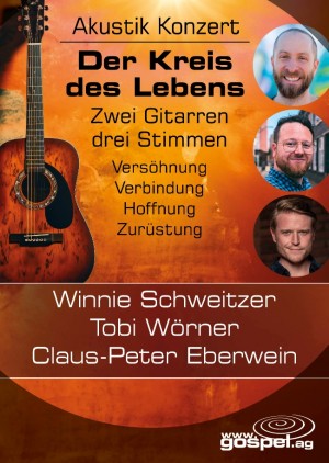 In einem abwechslungsreichen Programm, wollen sie mit Ihren Liedern und Texten die Gäste in Ihrer Lebensrealität abholen, mit der Vergangenheit versöhnen, mit der Gegenwart verbinden und mit Hoffnung für alles Zukünftige ausrüsten. Bekannte Lieder wie „Du tust“, „Befreit durch Deine Gnade“ oder „Für Immer“ die zum Mitsingen einladen, wechseln sich mit neuen unbekannteren Vortragsliedern ab. Verbunden durch gelesene Texte von Tobi Wörner, bildet sich so den Abend über der Kreislauf des Lebens, in dem wir immer und zu jeder Zeit in das Beziehungsgeschehen Gottes eingebunden sind.