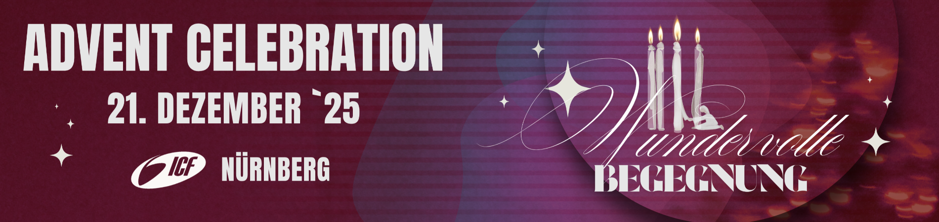 Advent Celebration des ICF Nürnberg e.V. in der Lutherkirche am Hasenbuck mit weihnachtlichen Liedern und einer Predigt von Daniel Kalupner. Ein kleiner Weihnachtsmarkt lädt danach noch zum Verweilen und Genießen der Vorweihnachtszeit ein.