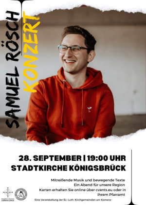 Am 28. September um 19:00 Uhr kannst du Samuel Rösch im Trio live in der Königsbrücker Stadtkirche erleben. Sei dabei und genieße seine faszinierende Musik, emotionalen Text und Natürlichkeit. Tickets gibt es hier: