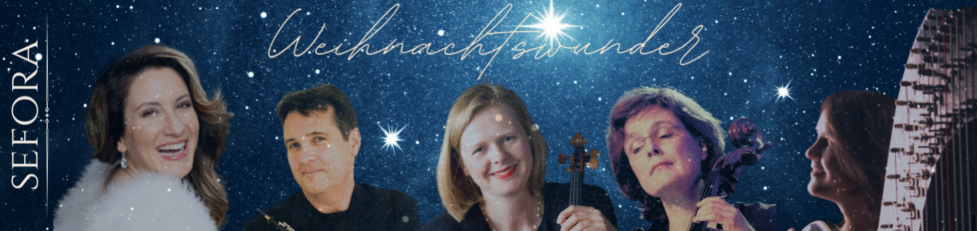 Mit einer einzigartigen, hochkarätigen Besetzung, Adeleheid Abt an der Violine, Renate Busse am Cello, Ulrike Busse an der Harfe, sowie James Isaacs an Oboe, Flöte und Englisch Horn wird das Wunder mit allen Sinnen erlebbar.