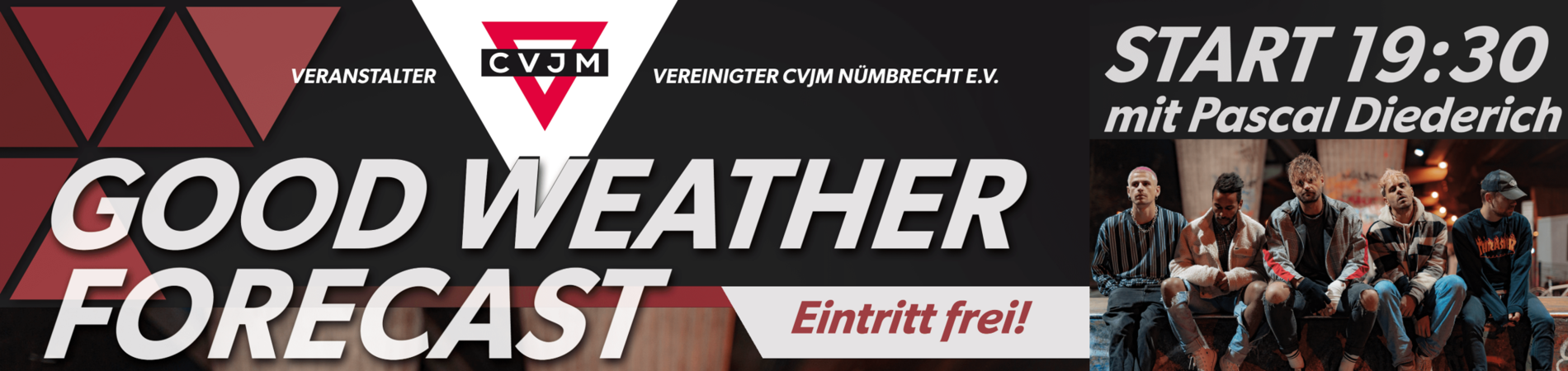 Die drei Brüder Flo, Jonny und Dave und Freund Timo haben ihr Zuhause, die Bühnen dieser Welt, schon lange gefunden: Bis heute können Good Weather Forecast mehrere hundert Gigs in 17 Ländern und vier Kontinenten auf ihrem Konto verbuchen. Doch eines hat sich nicht eingeschlichen: Routine. Jeder Gig wird gespielt, als wäre es der Erste. Oder der Letzte. Jede Show ist besonders. Das macht Good Weather Forecast zu einer außergewöhnlichen und authentischen Live-Band, bei der man sich auf ein ganz besonderes Energie geladenes Konzert Erlebnis freuen darf.
