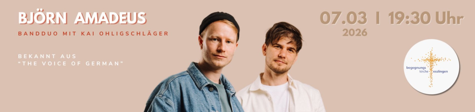 Der 27-jährige Singer/Songwriter und studierte Musiker aus Osnabrück steht bereits seit seinem 4. Lebensjahr auf der Bühne und ist auf zahlreichen Studioproduktionen zu hören. Im Jahr 2014 begeisterte er mit seiner erfolgreichen Teilnahme bei „The Voice of Germany“ das Fernsehpublikum. 2016 war es dann soweit: Das erste Soloalbum von Björn Amadeus mit dem Titel „Ich glaube, es gibt mehr“ wurde veröffentlicht – berührende, deutschsprachige Songs über Lebensfreude, Glaube, Hoffnung und Liebe. Seine neuste Single „Das schönste Geschenk“ ist nicht nur ein Vorgeschmack auf sein zweites Solo-Album, sondern auch der letztjährige Titelsong der Geschenkaktion „Weihnachten im Schuhkarton“. Auf seinen Konzerten wird deutlich: Björn Amadeus hat etwas zu erzählen – hoffnungsvoll, ermutigend und authentisch. Weitere Infos finden Sie auf: www.bjoernamadeus.de