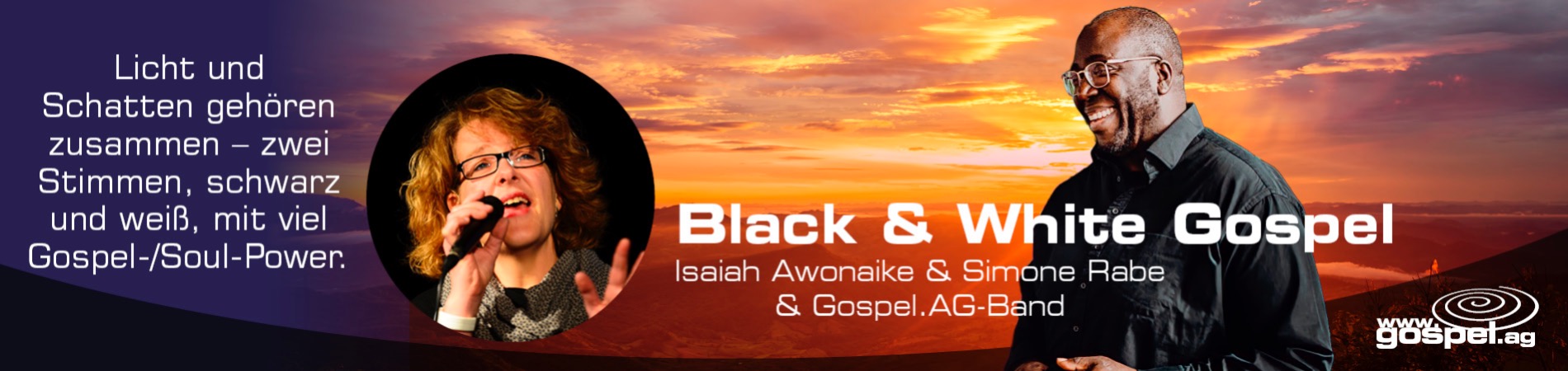 Mit dem „Black & White“ – Gospel-/Soul Konzertprogramm verbindet die gospel.ag was Gott uns mit einer wunderbaren schwarzen und weißen Stimme geschenkt hat - die Gospelmessage zu den Menschen bringen.