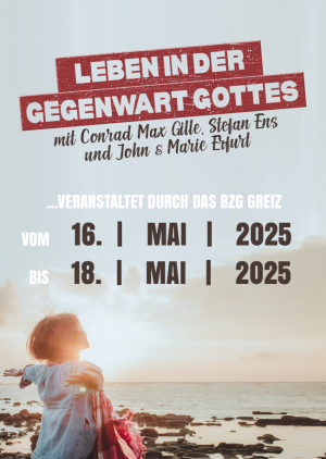 An diesen Tagen möchten wir ganz bewusst in Gottes Gegenwart eintreten. Wir nehmen uns Zeit, Gott neu zu erleben & neu entzündet zu werden um in seiner Gegenwart zu leben.