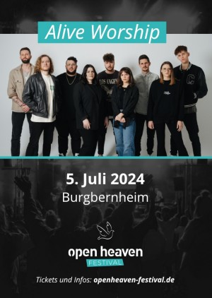 Alive Worship ist eine Lobpreis-Band aus Deutschland, die seit vielen Jahren Worship-Musik produziert. Ihr Ziel ist es, durch ihre Musik Menschen in die Anbetung Gottes zu führen. Außerdem ist sie Teil von Alive Music, dem Lobpreisdienst der Alive Church Germany. Mittlerweile hat Alive Worship mehrere Alben produziert, darunter „Gnadenthron“, „Vollkommene Liebe“, „Gott ist so viel mehr“ und „Wüstenheil". Neben selbst komponierten Songs wurden auch regelmäßig deutsche Übersetzungen und Covers von bekannten Künstlern wie Elevation Worship oder Hillsong produziert. Alive Worship hat bereits europaweit auf verschiedenen Events gespielt und ist regelmäßig im deutschsprachigem Raum auf Tour.
