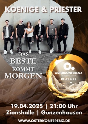 Die "Das Beste kommt morgen-Tour" von Koenige & Priester macht Halt bei der Osterkonferenz in Gunzenhausen. Es erwartet Euch ein Abend voller Wunder-Geschichten!