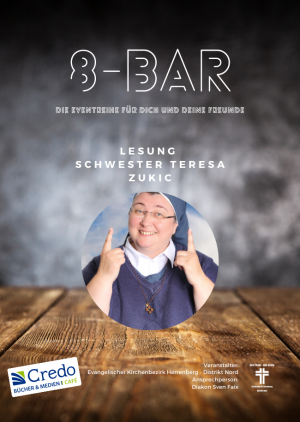 Die mehrfach ausgezeichnete Autorin und Keyspeakerin Schwester Teresa Zukic liest aus ihrem ermutigenden Bestsellerbuch “Lebe, lache, liebe...und sag den Sorgen gute Nacht!”, mit lebensnahen Hilfestellungen für den Alltag.