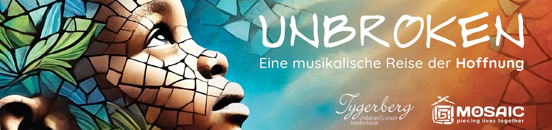Mit „Unbroken – Eine musikalische Reise der Hoffnung“ erhalten zehn talentierte Kinder aus südafrikanischen Townships die Chance ihres Lebens. Gemeinsam mit dem weltbekannten und international renommierten Tygerberg Children’s Choir gehen sie auf Europatour – mit einer Aufführung, die Hoffnung gibt und das Herz berührt. Durch Gesang, Tanz und Erzählungen teilen diese jungen Stimmen ihre Lebensgeschichten und erzählen von Hoffnung, Gottes Liebe und der Kraft der Veränderung, die entsteht, wenn jemand an sie glaubt.