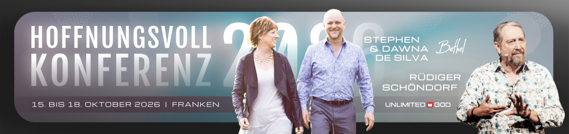 Wir laden dich ein, auf der diesjährigen Hoffnungsvoll-Konferenz vom 15. bis 18. Oktober im Leuchtwerk gemeinsam mit Stephen und Dawna De Silva und Rüdiger Schöndorf die Limitierungen deines Lebens zu sprengen. Erfahre Schutz und Kraft, dann geh voran!