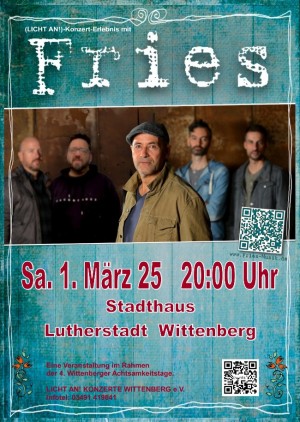 Die Band FRIES spielt eigene Singer-Songwriter-Rocksongs mit leichten Country-Einflüssen und deutschsprachigen Texten, die allesamt reif, gelassen und positiv klingen. Mal humorvoll mal nachdenklich und unabhängig vom Zeitgeist. Sie schlüpfen raffiniert in Hirn und Herz und richten dort allerhand an. Aber keinen Schaden. Sie kommen mit ungekünstelter, alltäglicher Sprache und berührenden Geschichten daher und schaffen es mühelos, einen Bogen von der Generation Streaming bis zur Generation Testbild zu spannen. Nicht verlieben, verlassen, vermissen, sondern bleiben, weitermachen - und ernsthaft Spaß am Leben haben, auch wenn die eine oder andere Illusion vielleicht schon etwas blasser geworden ist. Obwohl die Band mit dem ersten Album (Das Leben nach dem Happyend) eben erst loslegt, merkt man den 5 routinierten Jungs (mit Ex-SCHULZE-Sänger Frieder Sigloch) sofort an, dass sie nicht zum ersten Mal auf einer Bühne stehen und sich dort immer noch sichtlich zu Hause fühlen.