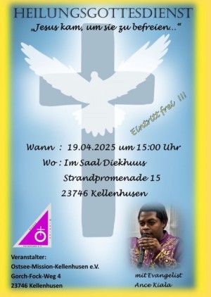 Am Ka.-Samstag den 19.04.2025 feiern wir einen Heilungsgottesdienst mit dem Titel „Jesus kam um sie zu befreien..“ . Der Titel wurde deshalb gewählt, da Jesus drei Tage hinabgestiegen ist um die Gefangenen im Totenreich zu befreien und den Tod ein für alle Mal zu besiegen.